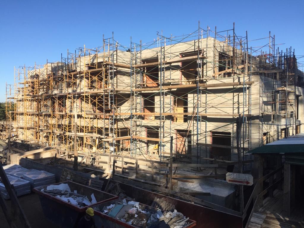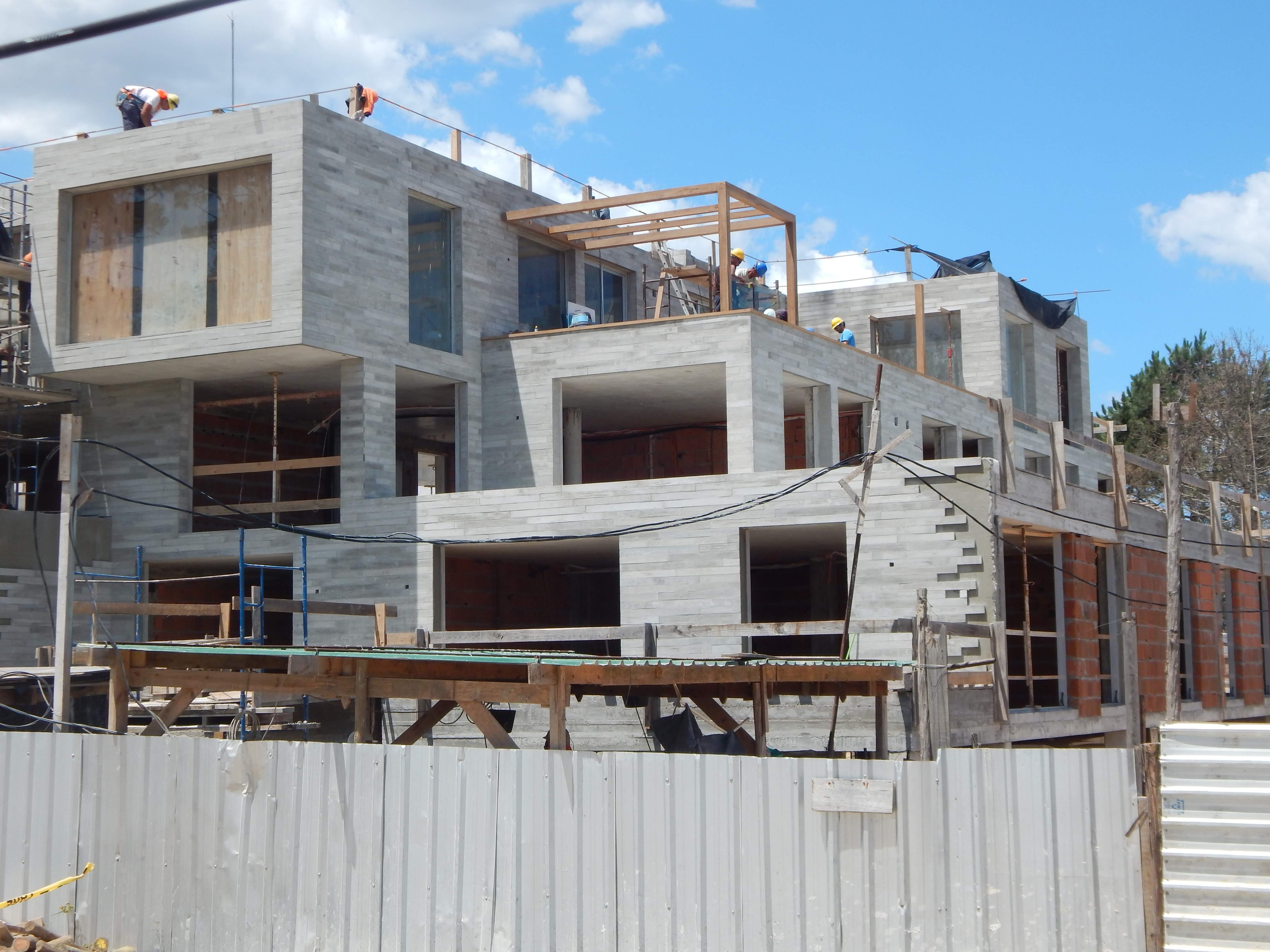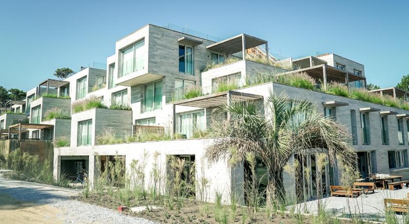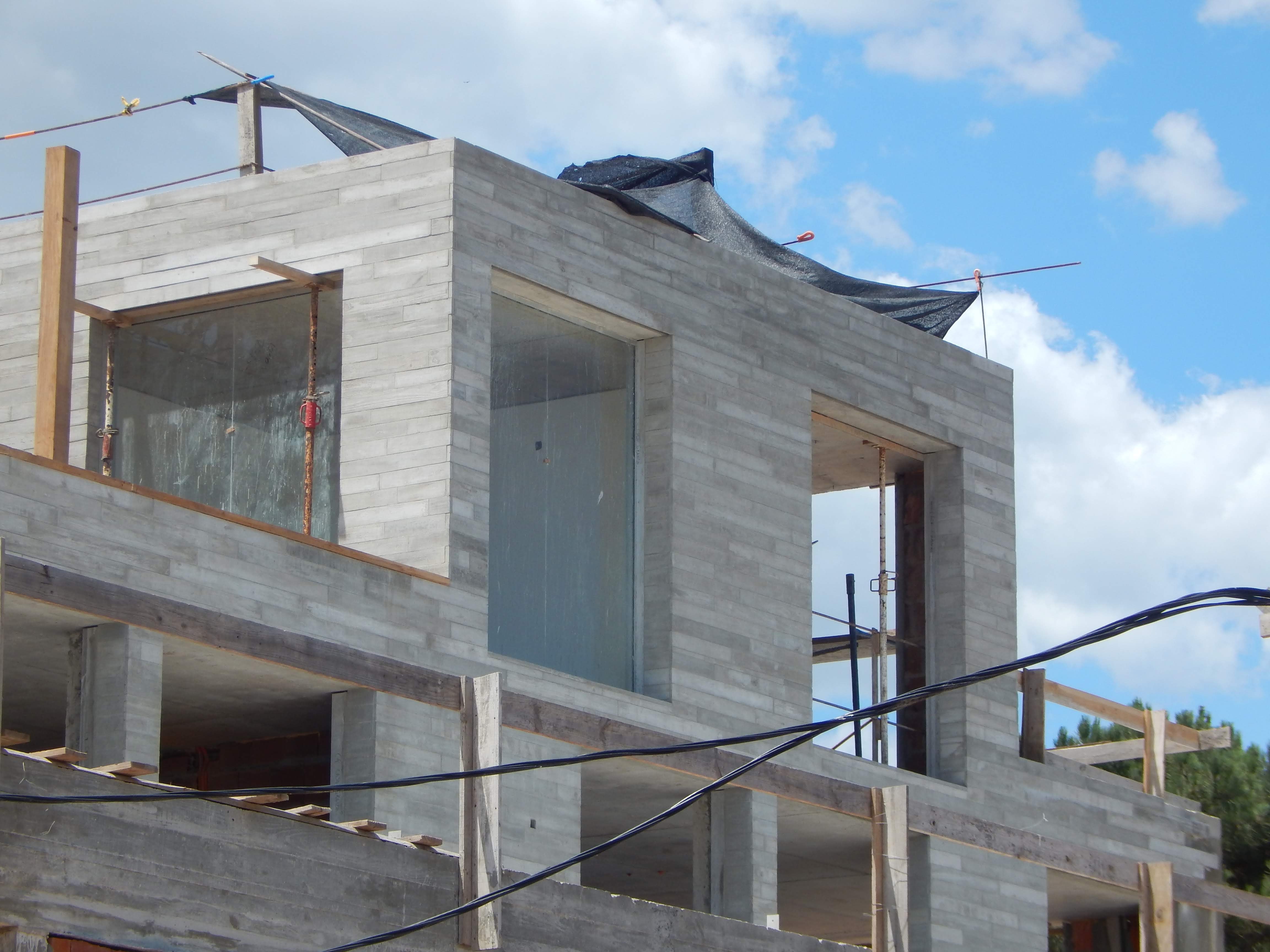 Revestimiento en fachada listón pino. Hotel Casa Grande, José Ignacio